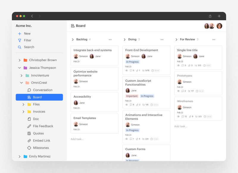 - Track Task Progress: Clients can monitor the status of tasks on Kanban boards, and you can further give them access to assign responsibilities and adjust priorities as project needs change.