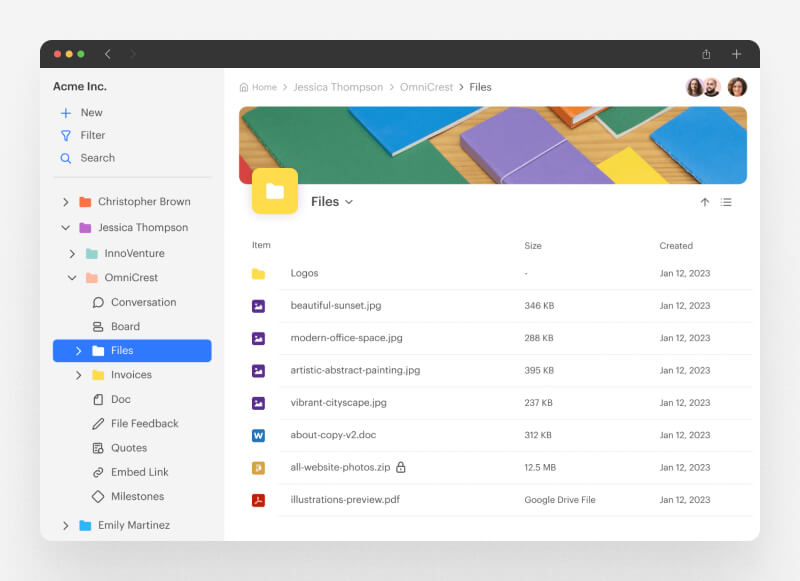 - Access Shared Files: Clients can retrieve important folders and files at any time, ensuring they have the latest versions readily available.