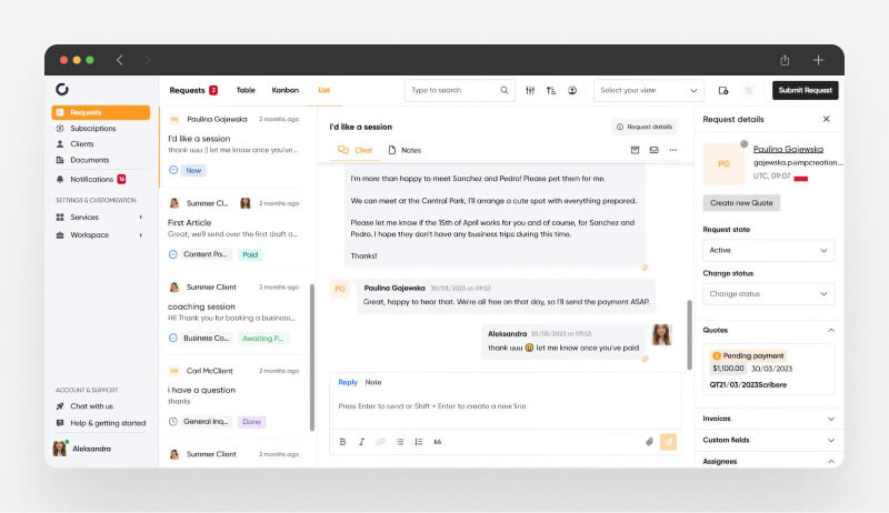 - Access Everything in One Place: Clients can view all their projects, requests, tasks, messages, invoices, and files in a single, organized workspace that feels familiar.