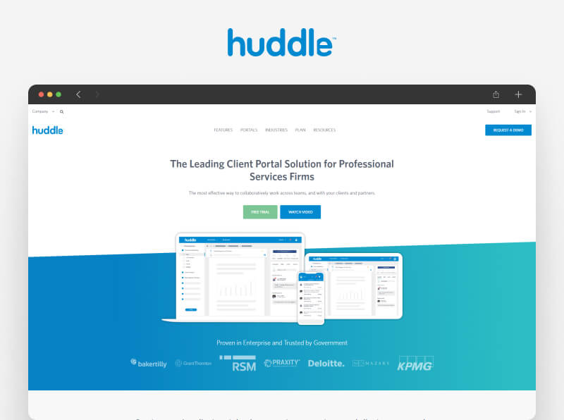And last, Huddle is currently in its demo version, but worth checking out. It’s a good client portal solution fo businesses to create secure spaces for sharing files, communicating, and managing projects.